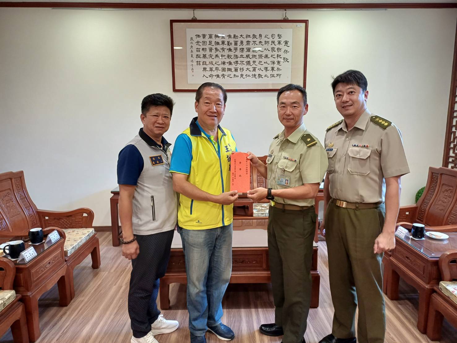 高雄市軍人服務站王振華顧問赴憲兵204指揮部敬軍 致贈中秋祝福 2025/09/26 - 鄭慧美報導 - 【記者鄭慧美/高雄報導】高雄市軍人服務站顧問王振華先生為感謝國軍官兵無私奉獻、守護家園的辛勞,今(25)日在高雄市軍人服務站站長吳俊一陪同下,前往憲兵204指揮...