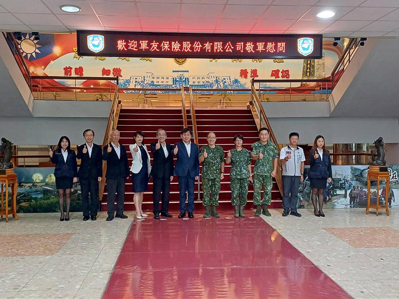 軍友保代公司中秋前夕敬軍慰勞 感謝國軍守護國家 2025/09/25 - 鄭慧美報導 - 【記者鄭慧美/高雄報導】軍友保險代理人股份有限公司為感念國軍官兵在保國衛民上的辛勞與付出,今(23)日上午由董事長郭建忠率領總經理黃秀芬、總顧問歐復興,以及國軍...