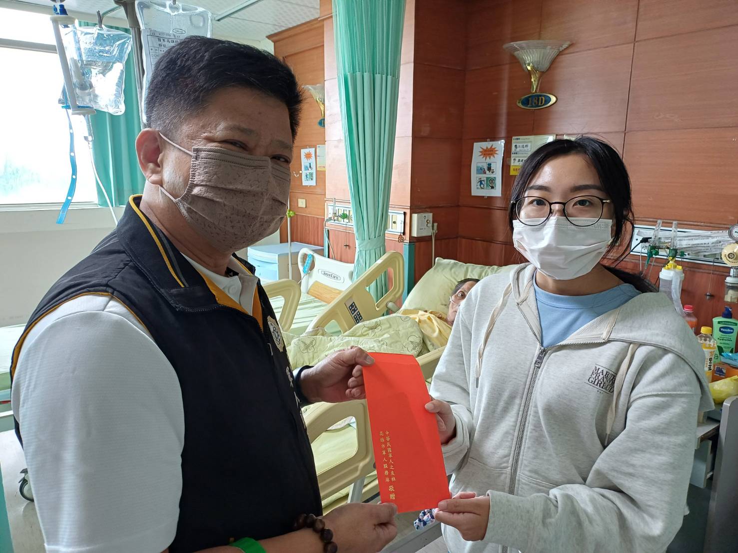 【記者鄭慧美/高雄報導】海軍一六八艦隊左營軍艦曾姓上士日前於家中不慎跌倒受傷,送往高雄國軍總醫院急診後,目前正在住院接受治療。高雄市軍人服務站站長吳俊一於28日代表高雄市政府前往醫院探視,除關心其治療情況外,並致贈慰問金,轉達軍人之友社的關懷與支持。軍人服務站表示,官兵於服役期間若遭逢意外或家庭困難,軍友社及各級軍人服 ...