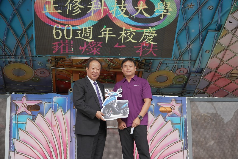 學校特別在生活創意大樓前舉辦「正修科大60週年教職員工餐會」,席開73桌,邀請逾700位教職員工齊聚一堂,餐會現場除安排精彩表演及摸彩活動之外,還準備了多項豐富獎項,由董事長李偉山與校長龔瑞璋抽獎,最大獎為光陽GP125七期鼓煞機車與iphone17,為活動掀起最高潮,全場氣氛熱烈,掌聲不斷,象徵學校對教職員工的誠摯感謝與祝福。
