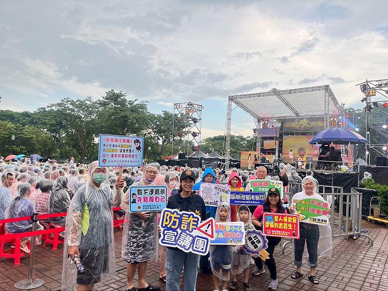 湖內分局犯罪預防宣導團除以接地氣口吻對民眾說明外,並輔以生動的宣導道具及標語,讓民眾易於接收宣導訊息,現場民眾除了觀賞藝人精彩的演出,也和宣導人員互動,認識現今的詐騙手法,也學習如何防範,不落入詐騙集團的圈套。