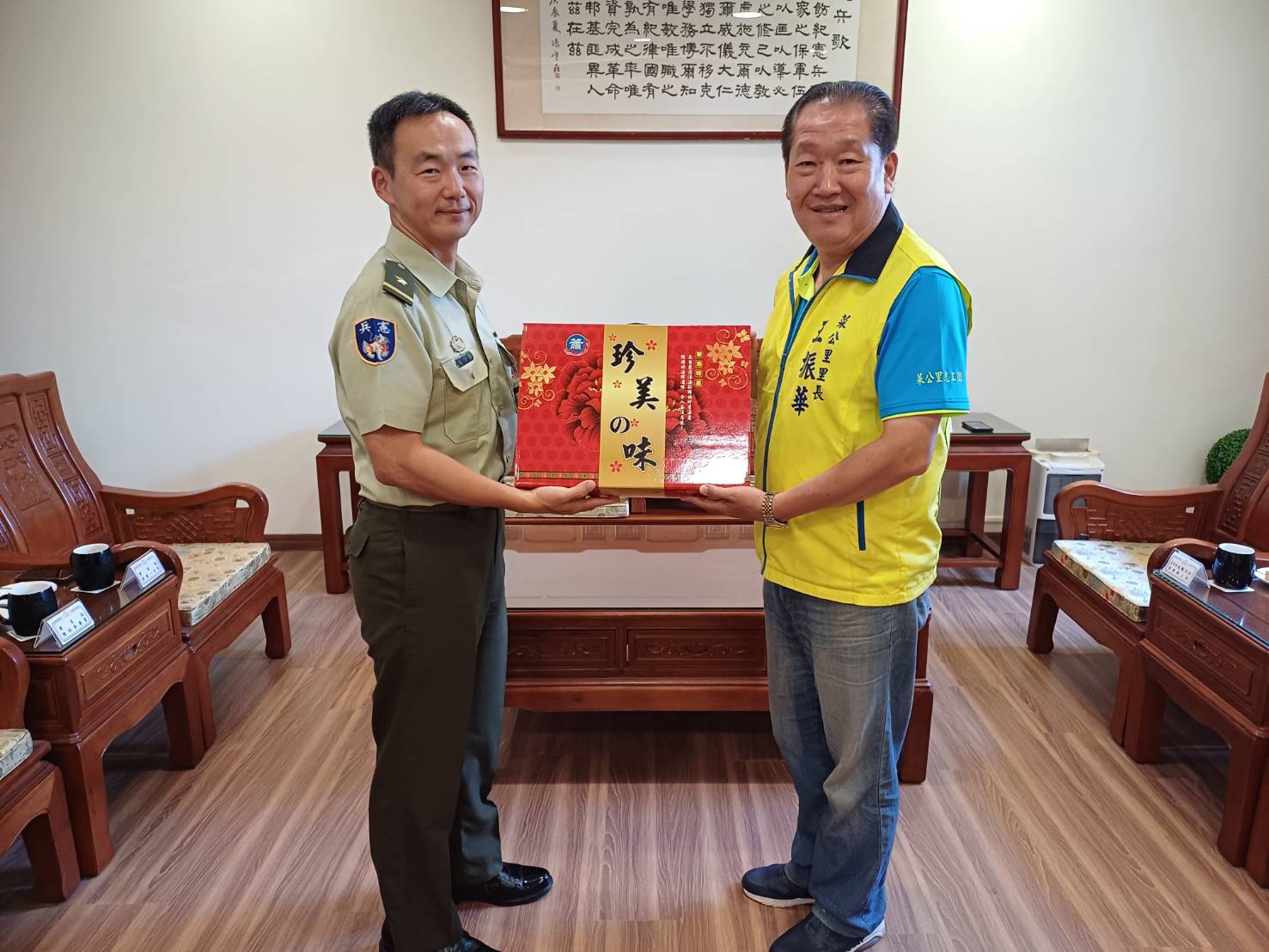 【記者鄭慧美/高雄報導】高雄市軍人服務站顧問王振華先生為感謝國軍官兵無私奉獻、守護家園的辛勞,今(25)日在高雄市軍人服務站站長吳俊一陪同下,前往憲兵204指揮部實施敬軍活動,受到指揮官楊少將及全體官兵熱烈歡迎。