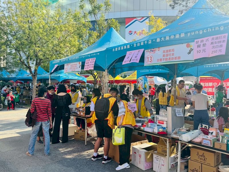【記者張永漢/高雄報導】為助建創世基金會花蓮分院,永慶房產集團高雄區四品牌經管會、港都電台攜手創世高雄分會凝聚各方愛心,今日(11/22)在高雄大遠百前廣場,辦理「2025動員港都的愛~院望啟程」園遊會,現場設有60個攤位,集結百家企業、店家的排隊打卡美食、傳香古早味、熱門伴手禮等產品;港都電台型男靚女DJ輪番上場擔任主持人炒熱氣氛,唐心服務協會的唐心鼓樂團弱勢助弱勢,以磅礡太鼓開場,IP人偶柴語錄-柴柴與蜜柑站長尬舞互動,愛心大使曾瑋中帶領粉絲同樂,及文創社團、樂團等精采表演;還有機會抽中中華航空-高雄大阪來回機票、鮪魚家族飯店住宿券、小家電等禮品,吸引超過三千位民眾前往參加,現場人聲鼎沸,相當熱鬧。