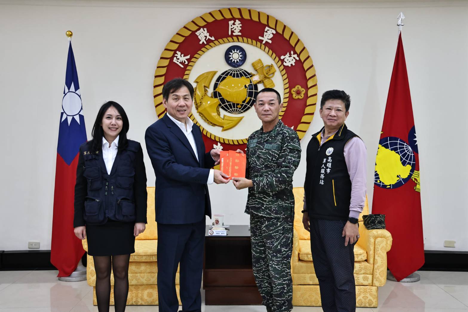 【記者鄭慧美/高雄報導】為感謝國軍官兵長年捍衛國家安全、守護民眾福祉的辛勞,臺銀人壽專屬保代—軍友保險公司董事長郭建忠,今(27)日率總顧問歐復興、總經理黃秀芬,並偕同所屬國軍急難慰助慈善協會理事長黃開森、副理事長陳育琳等人,在高雄市軍人服務站站長吳俊一陪同下,前往南部多處駐軍單位慰訪官兵,並提前向國軍弟兄姐妹們祝賀農曆春節。