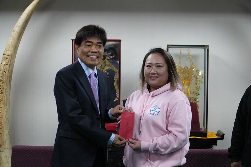 隨後,龔瑞璋校長頒發「正修科大運動績優學生獎學金」15萬元,鼓勵楊森在專業與競技舞台上勇於追夢。此外,休運系校友聯誼會亦致贈許小莉教練紅包1萬元,肯定其在選手培育與運動傳承上的辛勞與付出。