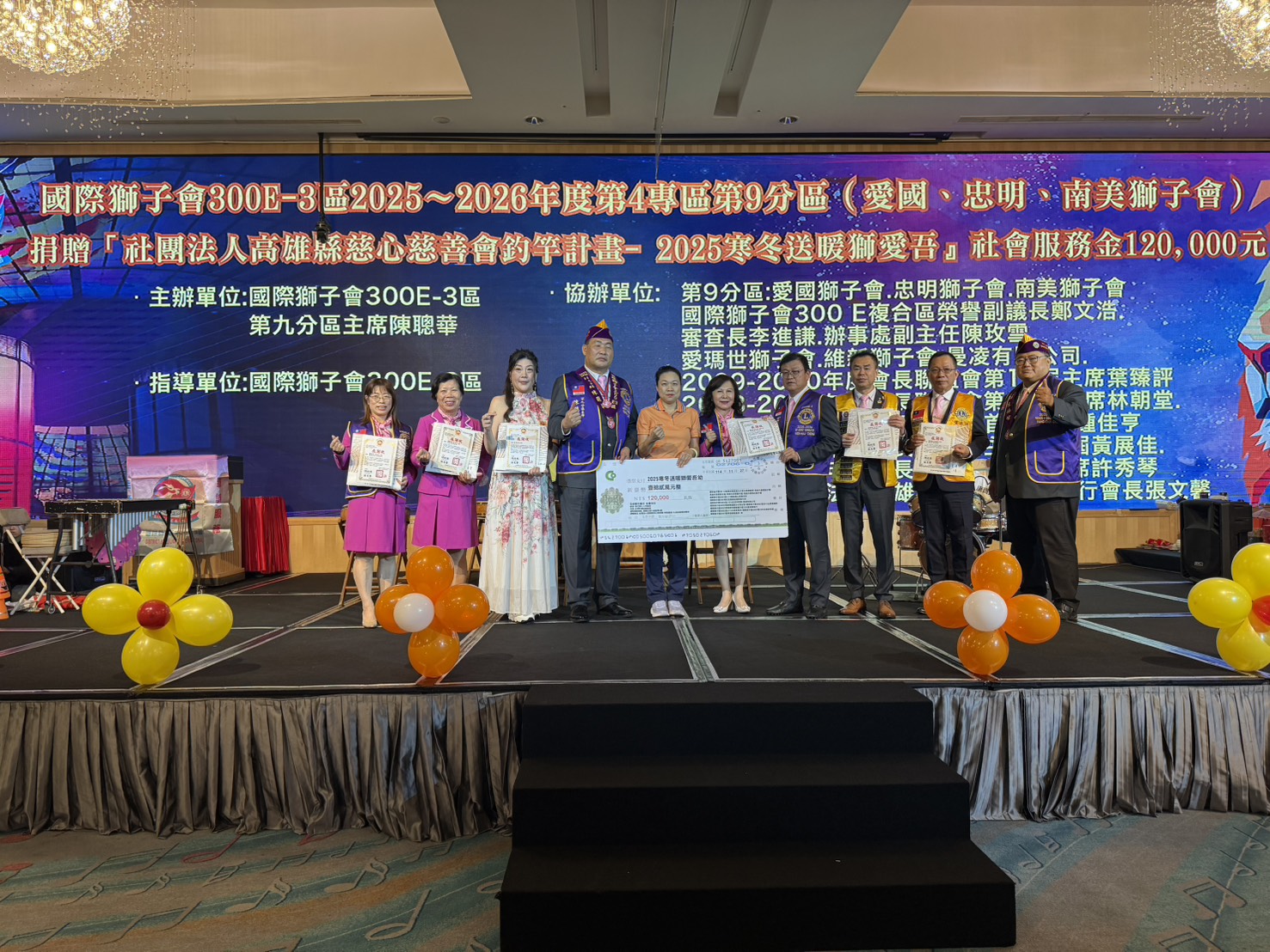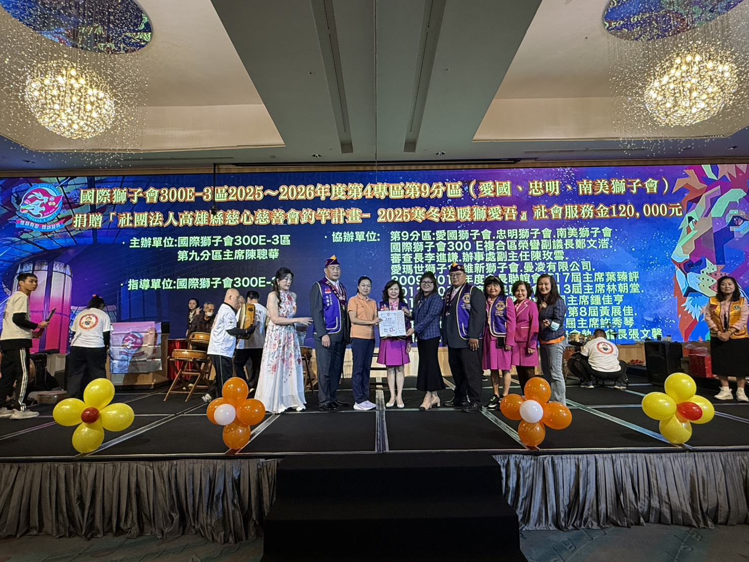 高雄縣慈心慈善會自1986年成立以來,長期關注弱勢族群需求,2010年正式法人化後,更系統化推動義診、就業輔導與志工服務。理事長表示:「我們不只給予短期援助,更希望透過技能培力,讓受助者擁有自立的能力與尊嚴。」 2025年11月27號在高雄巨蛋金凰廳捐款的單位有 國際獅子會300 E3區第四專區第九分區主席陳聰華 、高雄市愛國獅子會(10000元) 、高雄市南美獅子會(10000元) 、高雄市忠明獅子會1000O元 、高雄市愛瑪仕獅子 會(10000元)、國際獅子會300 E3區1516聯誼會主席鍾佳亨(5000元) 、國際獅子會300 E複合區榮譽副議長鄭文浩(10000元) 、國際獅子會300 E3區 1314主席林朝堂(1000O) 、曼凌有限公司(5000元) 、國際獅子會300 E3區辦事處副主任陳玫雪(10000元)、國際獅子會300 E3區0910主席葉臻評10000元 、國際獅子會300 E3區高雄市維新獅子會2526會長陳御斤10000元 、國際獅子會300 E3區1819主席黃展佳5000元 、國際獅子會300 E3區1920主席許秀琴5000元 、國際獅子會300 E3區李進謙審查長5000元 等、當日由社團法人高雄縣慈心慈善會高雄市心智障礙協會以及脊髓重健協會奉上感謝狀,憨喜寶寶也送上自己手作的餐具回贈用以表示感謝、慈心慈善會的慈心寶寶也回贈手作茶包(一品御斤香)用來感恩所有付出的長輩們。 唐氏正樂團的吳爸爸也帶著小朋友們到現場擊太鼓、爵士樂、將現場的氣氛帶動到最高點。 呼籲社會參與 公益活動!