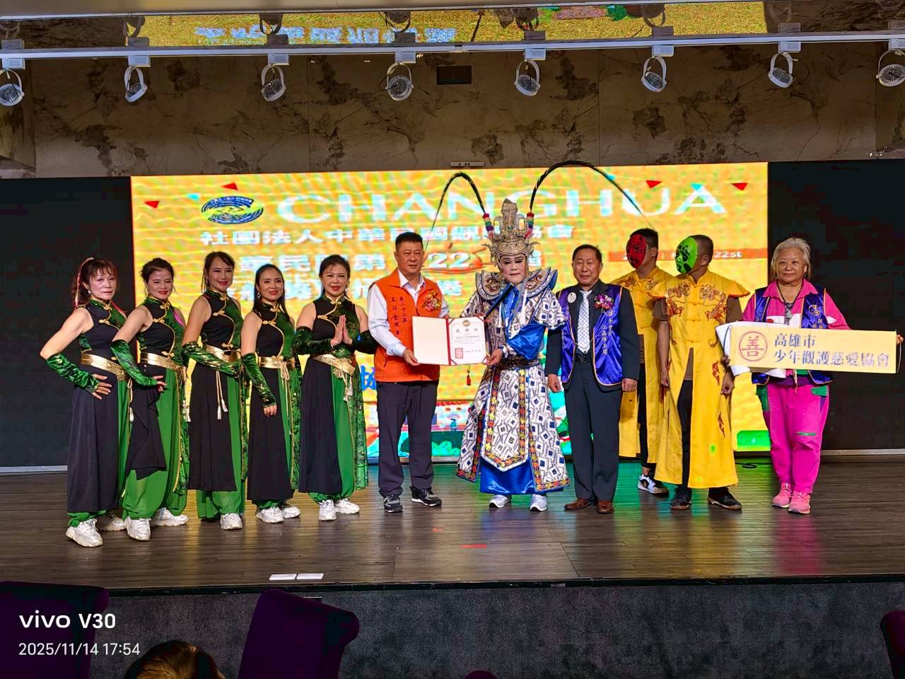下午的金舵獎與旭青獎頒獎典禮,由高雄少年觀護慈愛協會志工團體表演拉開序幕,在兩大表演團隊-綺莉藝術表演團與東隆宮傳統國術團隊的精彩演出中拉開序幕,成功吸引了全場觀眾的目光。藝術與文化的交織,彰顯了公益與傳承的力量。