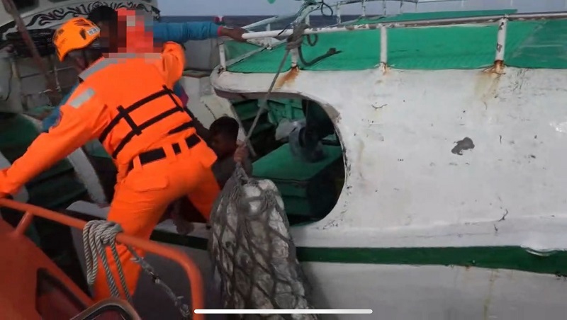 【記者王培興/高雄報導】海巡署艦隊分署於17日晚間接獲通報,一艘琉球籍鮪延繩釣漁船「富○」號於東港東南方528浬海域作業時,船上1名印尼籍漁工突發昏迷,經醫師遠距評估有立即就醫需求,船方請求海巡協助。海巡署立即調派直屬船隊「巡護八號」船前往應處,為爭取黃金救援時間,巡護八號即採與「富」船對開方式航行,雙方同步縮短距離,以加速會合時程。