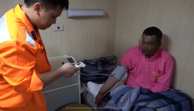 圖說3:海巡人員量測病患體溫及血壓