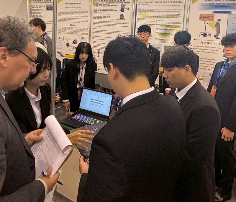 由龔皇光、林邦傑老師指導,學生李順良、林聖傑、謝明祐、陳琮竣、林彥辰、陳又寧共同研發「AI人工智慧軌道自動潤滑機器人」作品以高雄輕軌為例,開發AI智慧辨識與自動化維修系統,能於行駛間精準完成軌道潤滑,大幅提升維護效率及安全性,榮獲金牌肯定。