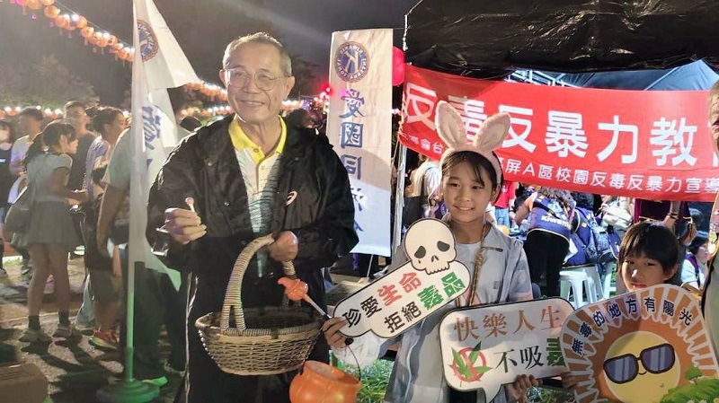 為喚起全民對「反毒、反暴力、反詐騙」的重視,高雄市觀護協會特別結合節慶氛圍,在11月1日下午5時至8時30分舉辦寓教於樂的宣導活動。現場人潮絡繹不絕,許多家長帶著孩子穿著可愛的鬼裝與英雄服,來到協會攤位前參與互動,榮譽理事長周玉枝親自主持宣導活動,以生動的語言與幽默的互動,將原本嚴肅的反毒議題轉化為貼近生活又讓孩子易懂的提醒。她強調,「萬聖節可以搞怪,但不能被毒品搞壞!」唯有從教育著手,讓孩子們從小建立警覺與判斷力,使社會真正遠離毒害。