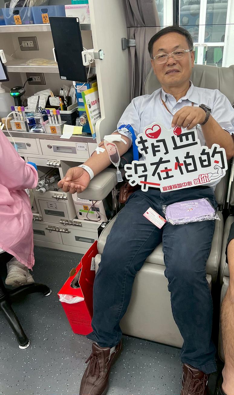 圖說:中油公司南部採購中心顏豪主任挽袖捐血。