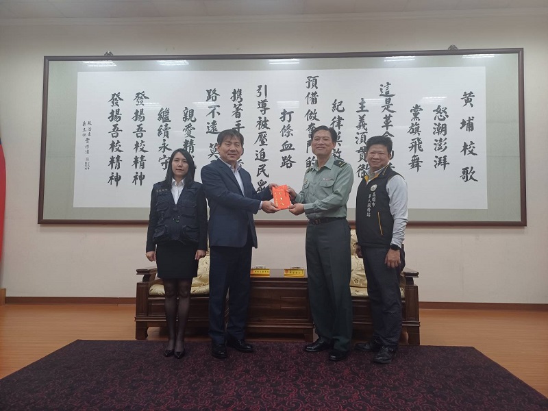 陸軍官校校長譚少將除感謝郭建忠一行不辭舟車之勞,為官兵獻上祝福、鼓勵士氣,凝聚軍民一心情誼外,並指出,軍友保險公司長期以來不僅在保險服務上提供周全協助,更在急難時刻伸出援手,讓官兵及眷屬深切感受到社會的溫暖。