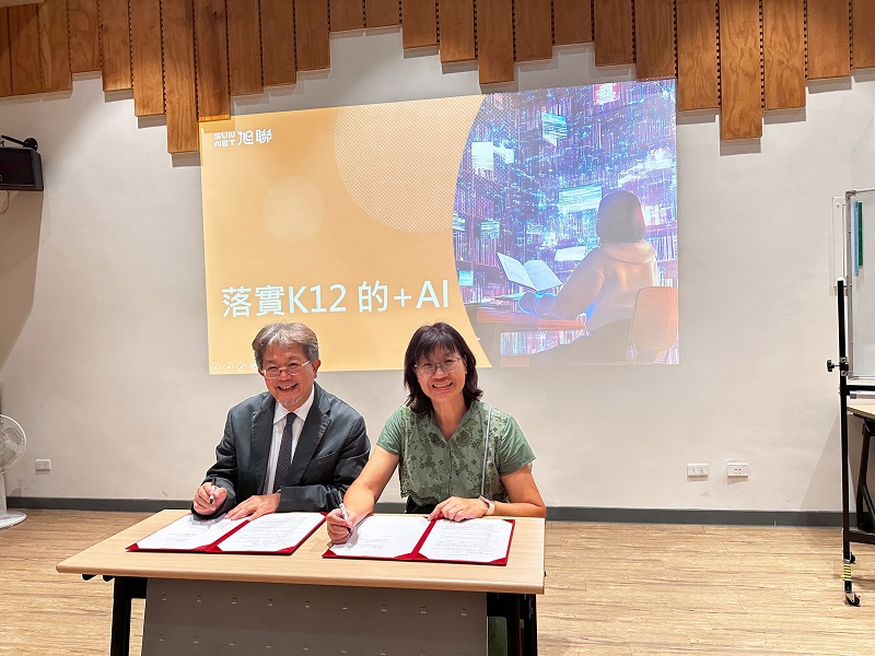 林香吟校長表示AI時代的關鍵能力在於「獨立思考與判斷決策」,13日與旭聯科技黃旭宏執行長簽訂MOU,推動AI教育學習