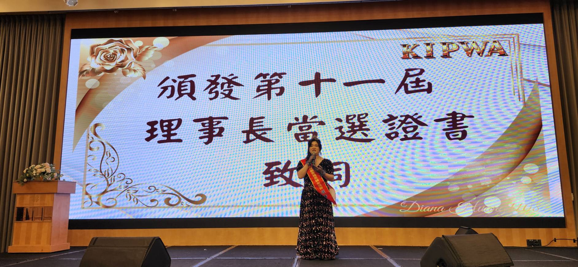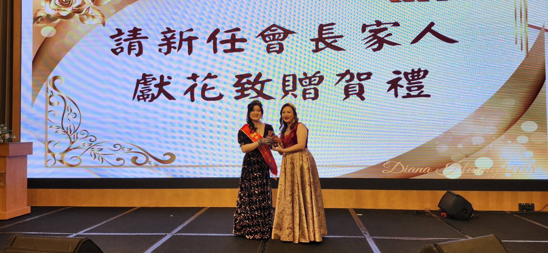 協會成員當晚亦盛裝出席,以專業自信展現女性領導者的凝聚力與優雅風采,交接典禮在隆重儀式中進行,第十屆團隊將象徵責任、使命與傳承的會旗與印信移交給周露濃,象徵新團隊正式展開任期。