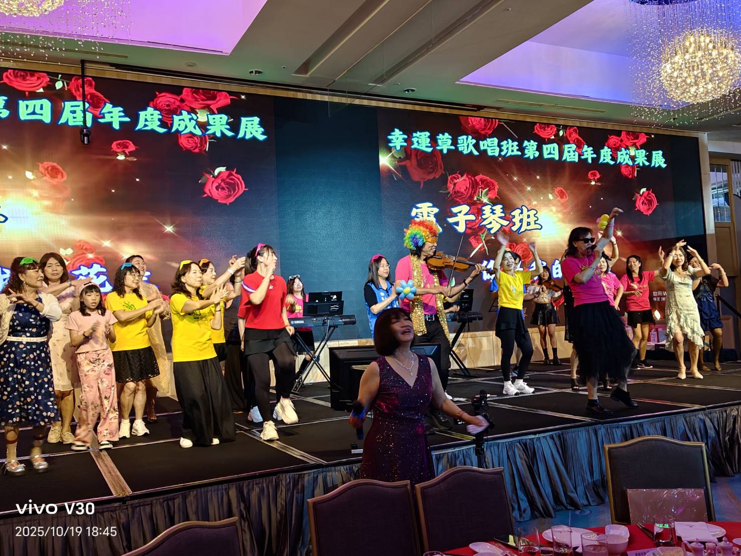 幸運草歌唱班四年來深耕社區,以音樂凝聚人心,讓每個人都能在歌聲中找到自信與希望。高雄的夜晚,在金鳳廳的燈光與旋律中,編織出一段段屬於城市的幸福篇章。未來協會將持續推動音樂教育與公益關懷,帶領學員唱出更璀璨的高雄之聲。