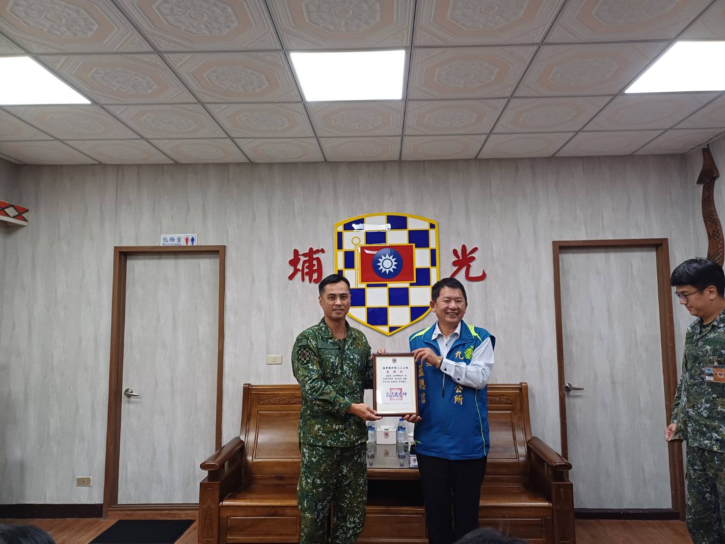 九如鄉長藍聰信表示,國軍弟兄姐妹平時精實訓練、厚植戰力,是人民最堅實的後盾;官兵們執行勤務更是不分平假日,犧牲休假、堅守崗位,全心守護台灣人民安全。此次特別前來致贈慰問金,藉以表達地方對國軍的關懷與敬意,以實際行動鼓舞部隊士氣,也向全體英勇國軍致上最高敬意。