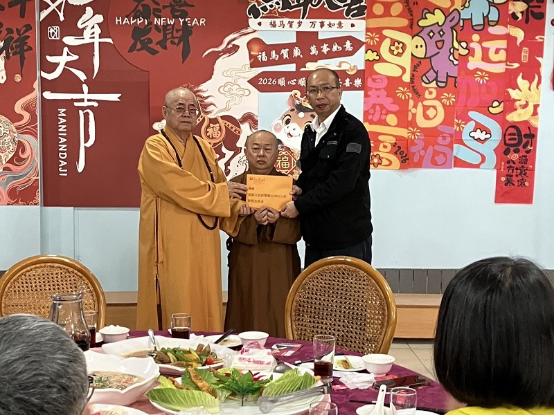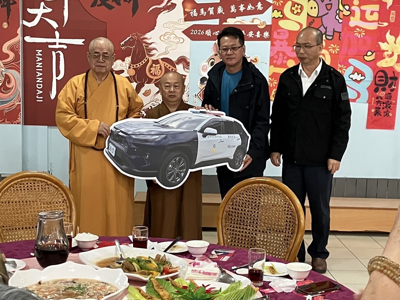 【記者王培興/高雄報導】高雄市阿蓮區光德寺於115年2月8日11時辦理年終餐會,秉持回饋地方、守護鄉里的精神,慷慨捐贈高雄市政府警察局湖內分局新臺幣10萬元,以提升警用設備,另捐贈阿蓮分駐所巡邏警車一輛,有效提升警方勤務運作機動性。