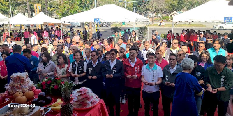 【記者林富華/高雄報導】農曆正月初九天公生,高雄市三民區新客家文化園區洋溢濃厚年節氣氛。高雄市長陳其邁今(25)日擔任「2026年客家新春祈福盛典」主祭官,在「竹頭背客家八音團」古韻悠揚的伴奏下,偕同跨黨派立委、市議員及客家仕紳,依循傳統禮制向玉皇大帝與土地伯公行三獻禮,祈求新的一年風調雨順、國泰民安。
