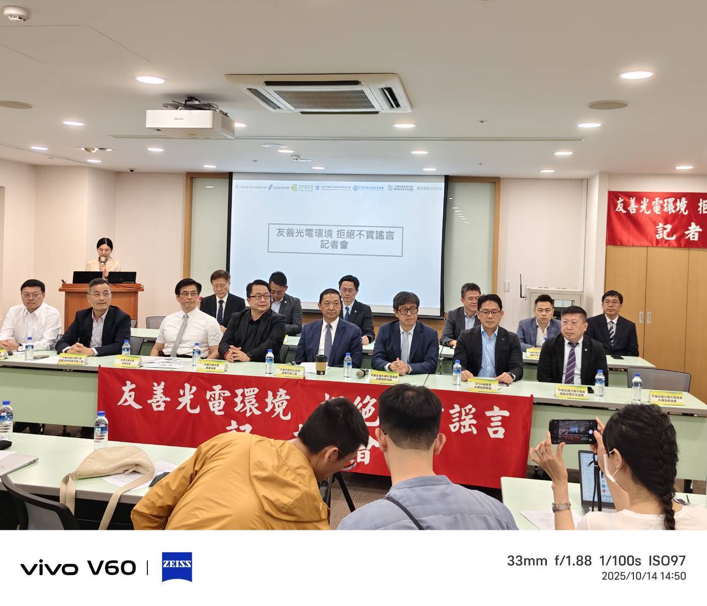 【記者張永漢/臺北報導】太陽光電七大產業公協會10月14日下午三時共同召開「產業澄清聯合記者會」,針對近日社群媒體散播「水庫光電使用化學藥劑清洗」、「光電模組可能有毒」等錯誤資訊,鄭重發表《七大光電產業公協會聯合聲明》,以事實與科學證據駁斥謠言,捍衛產業清譽,並呼籲社會回歸理性,共同支持台灣能源轉型的正軌。