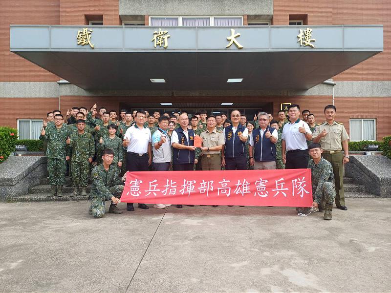 中秋慰勞官兵 高雄市後備憲兵荷松協會表達感謝與敬意 2025/09/26 - 鄭慧美報導 - 【記者鄭慧美/高雄報導】中秋佳節前夕,為感謝國軍官兵戮力執行戰備訓練任務的辛勞,高雄市後備憲兵荷松協會今(26)日前往陸軍第八軍團指揮部及高雄憲兵隊慰問官兵,並...