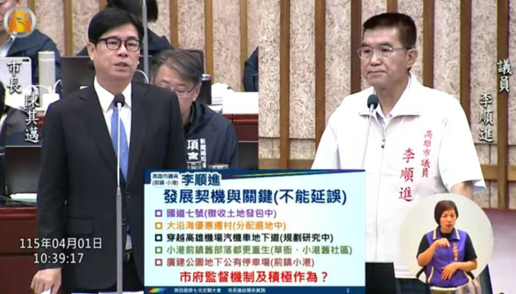 李順進指出,前鎮、小港擁有高雄港、國際機場、加工出口區及多處產業園區,是高雄連結國際的重要門戶,也是支撐高雄經濟發展的重要命脈,但地方長期面臨交通壅塞、停車空間不足、道路與公共設施不足等問題,地方民眾與產業界反映多年,市府應提出更積極的改善時程與具體規劃。