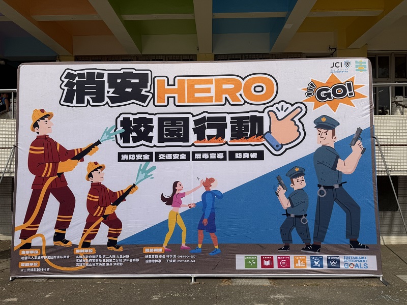【記者鄭慧美高雄報導】高雄市政府警察局少年警察隊於昨(22)日與高雄市博愛青商會、三民二分局、高雄市消防局大昌分局共同舉辦「消安HERO校園行動GO」體驗活動,假高雄市三民區光武國小舉行,邀請多名學生走入警察日常,透過一系列有趣、生動的情境遊戲,讓孩子在遊戲中學習反毒及消防安全等重要觀念,深受學生的熱烈參與。