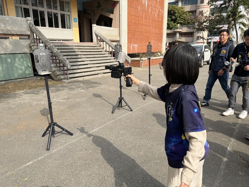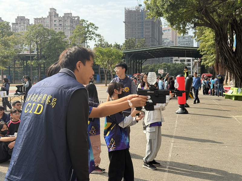 本次活動內容豐富多元,讓孩子一次體驗警、消工作的專業與辛勞,包括採新興毒品辨識、交通及消防安全學堂、警察勤務裝備展示等關卡,最受孩子們喜愛的「水彈槍射擊體驗」則在少年隊員警指導及安全管控下進行,警方示範瞄準與射擊技巧,讓孩子在專注與遊戲中培養紀律與安全觀念,活動中將品德及法紀教育巧妙融入遊戲,不僅拉近孩子與警察的距離,也讓反毒、交通及消防安全等重要知識自然在孩子心中萌芽。