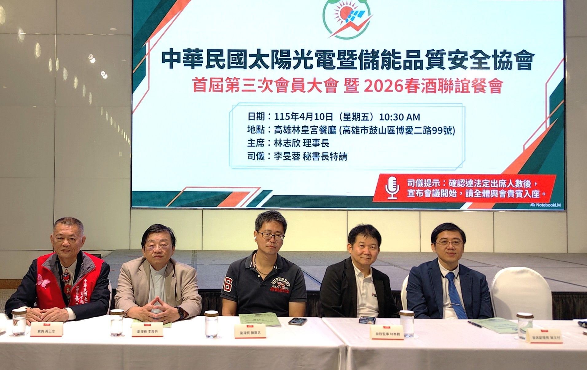 【記者王梵亦/高雄報導】在全球淨零轉型浪潮與能源結構重塑的關鍵時刻,台灣再生能源產業正邁入制度深化與品質提升的重要階段。2026年4月10日,中華民國太陽光電暨儲能品質安全協會於高雄林皇宮餐廳舉辦「第一屆第三次會員大會、春酒聯誼餐會暨第五次理監事聯席會議」,吸引來自全國產、官、學、研及社團領袖逾200人齊聚一堂,成為南台灣具指標性的綠能產業交流平台。