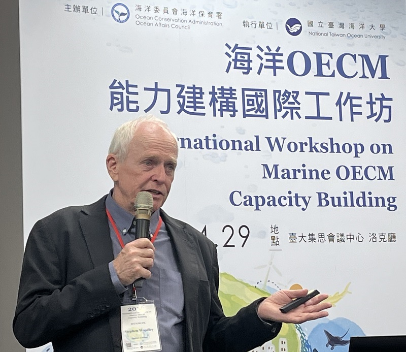 海洋委員會海洋保育署於29日於臺大集思會議中心舉辦「海洋有效保育區(OECM)能力建構國際工作坊」,邀請來自世界自然保護聯盟(IUCN)之國際專家,也是IUCN OECM指南作者Dr. Stephen Woodley、IUCN亞洲OECM實務社群協調人Ms. Mitali Sharma,以及國立臺灣海洋大學暨國立中山大學講座教授邵廣昭分享經驗,並與國內海洋有效保育區潛力場域之公民營事業、用海單位及管理機關等代表,共同探討面對全球海洋保育30×30目標之新趨勢,在海洋保護區(MPA)保育措施以外,如何透過OECM為臺灣海洋治理開創更多可能。