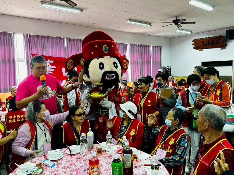 活動開場由內政部替代役公益大使團帶來精彩的「財神到」揭開序幕,並結合星展基金會的防詐推廣,特邀左營分局偵查隊及左營舊城派出所員警到場進行防詐宣導,加強長輩的防詐意識。接著由長輩與義工輪番上台K歌演唱,許多平日沉默寡言的長輩,在歡樂的氛圍下也放鬆心情,大方展現歌喉。華山近年來著重預防醫學,現場也安排「預防失智遊戲」,讓長輩活絡大腦與手腳,在新春之始就「健康動起來」。